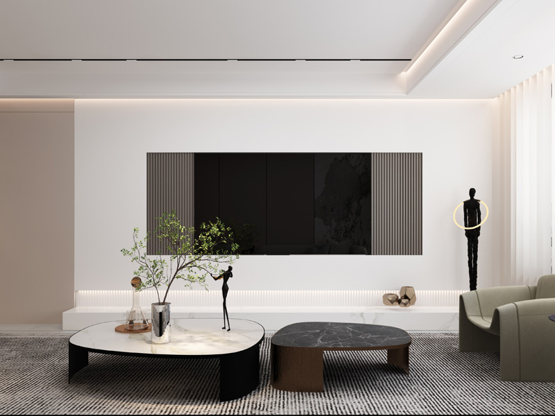 内嵌式设计需要先将墙面加厚一部分,再进行设计,由于最终的墙面大致是平面,所以呈现出的效果可以使空间更加整洁简约。