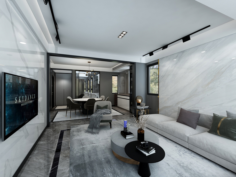 本案例风格定位于现代风,采用大理石面作装饰,给人自然硬朗的感觉,提升整体的品质感。