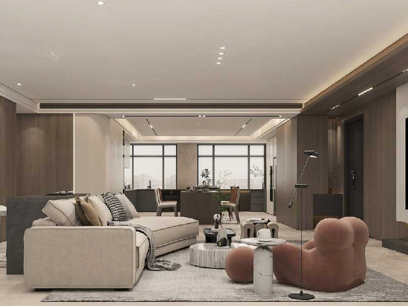 借助灯光设计去提升空间层次是比较合理实用的一种方式,布局隐藏灯带等,技能提升空间氛围感也能赋予层次。