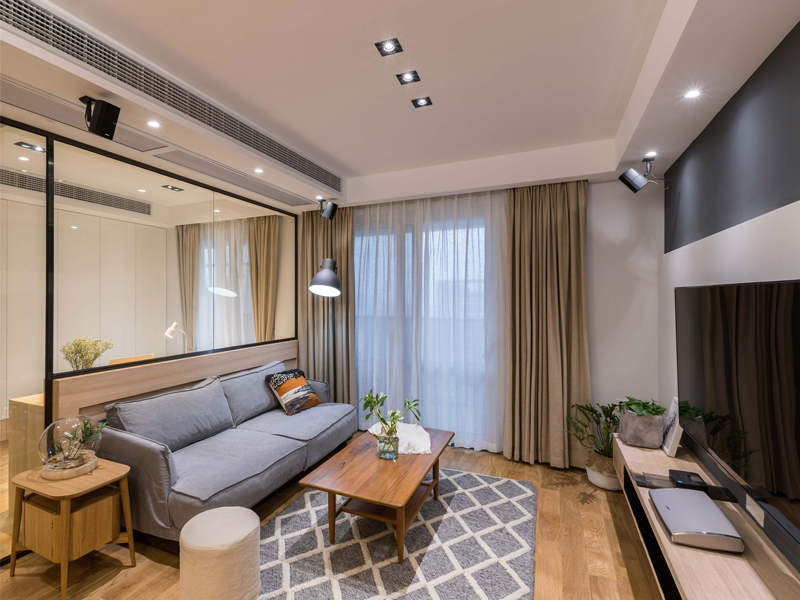 客厅空间多用木质元素,落地窗增进采光,提升空间自然氧气感,整体氛围更温馨惬意,仿佛置身大自然。