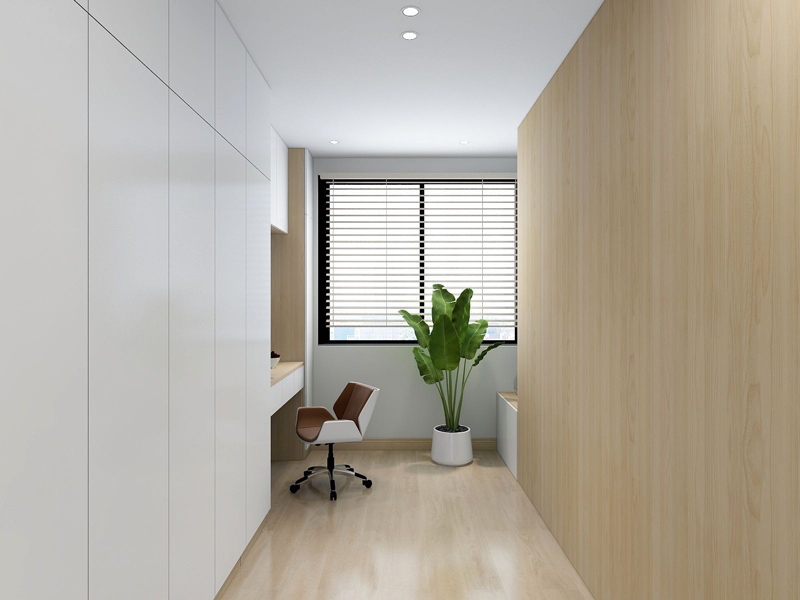 书房采用整面收纳柜设计,保证整体储物需求,实用性更强,独立的书房区域也让学习工作更专注。