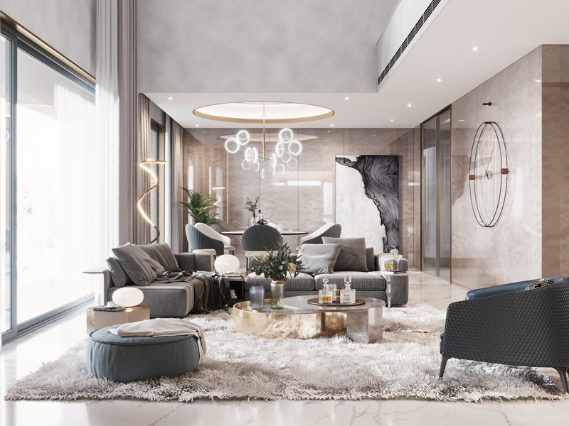 本案例风格定位于现代轻奢风,丰富饱满的空间呈现给人温馨舒适之感,营造出时尚精致的居所氛围。