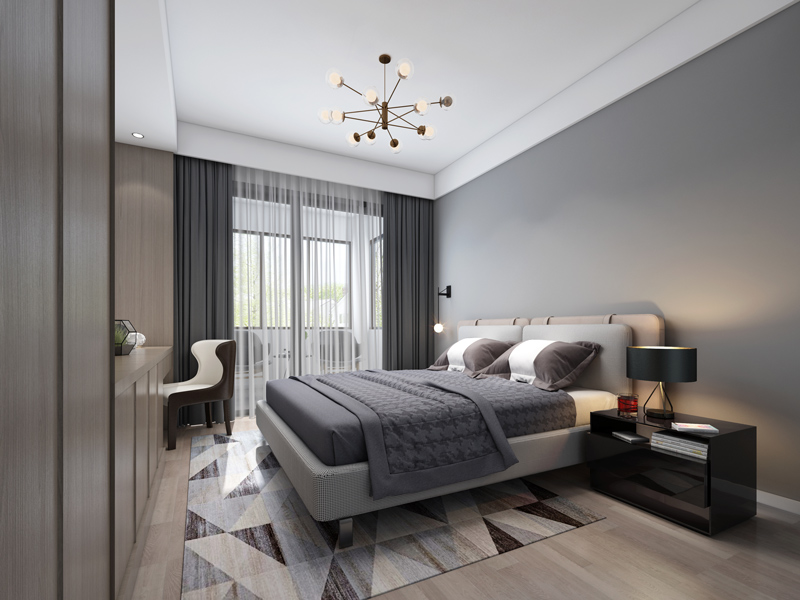 次卧的设计较为简洁,力求营造出舒适和谐的睡眠环境,没有过多的装饰,呈现静谧的睡眠氛围。