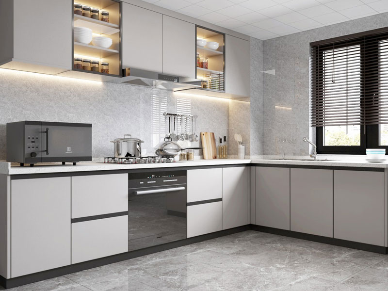 厨房保证了空间收纳需求,上下柜的设计实用性更强,和谐的色彩搭配以及隐藏灯带让操作更舒适便捷。