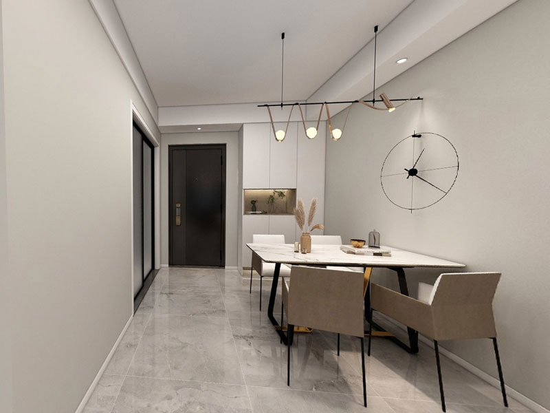 餐厅区域设计较为简洁,布局在厨房外部动线便捷舒适,在入户位置,起到一定的分区作用,避免直面客厅。
