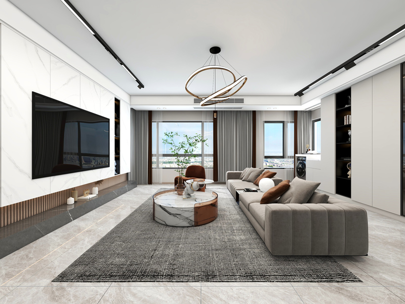 整体以简洁大方为主,横厅布局整体视觉空间通透敞亮,巧妙运用大理石、金属元素增添精致感,灯光搭配营造温馨氛围,打造出舒适且具格调的居住空间。