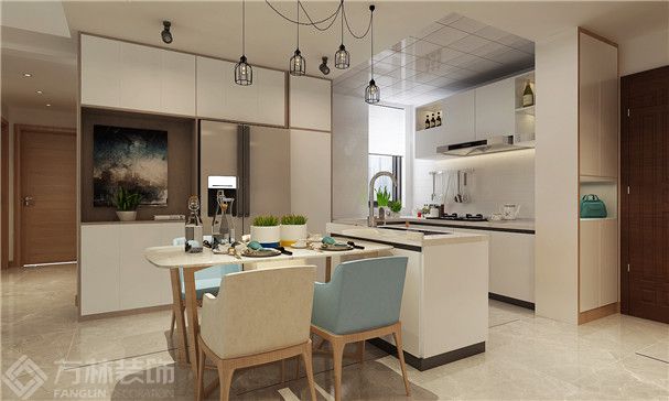 开放厨房的优点:厨房会成为家庭的中心,会增加主厨者和家人在做饭时的互动性;夏天做菜的同时还可以吹空调;施展空间大,做饭不会束手束脚,取东西也较封闭式厨房路径更短更便捷。