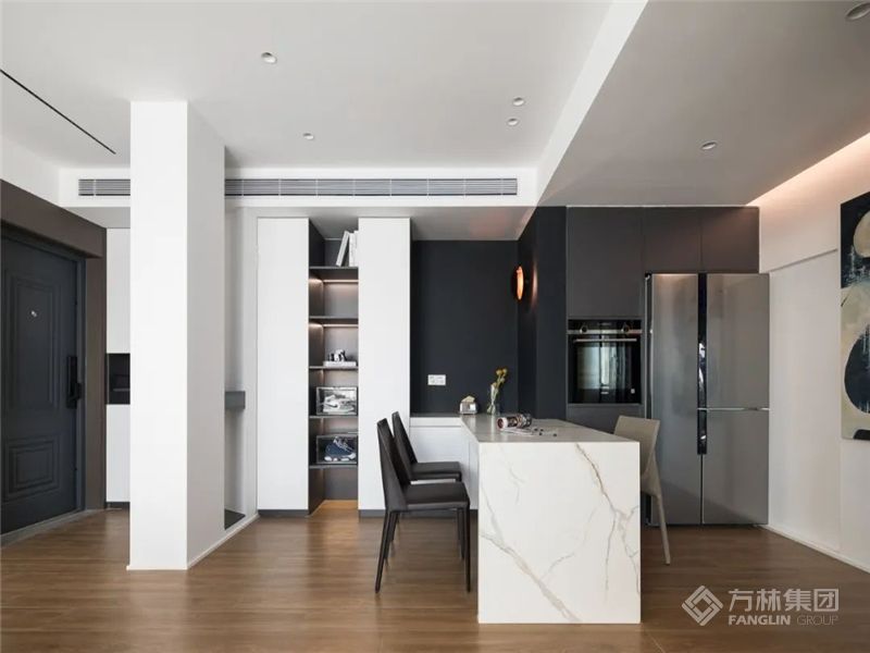 通过材质的碰撞融合、功能的整合、灯光的艺术叙事及软装的巧思点缀,呈现出格调感、功能性、生活感与开阔感。