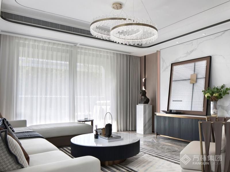 融合轻奢元素,以中性色调为基础,通过材质拼接、灯光设计与艺术软装营造出统一且富有层次的空间氛围。